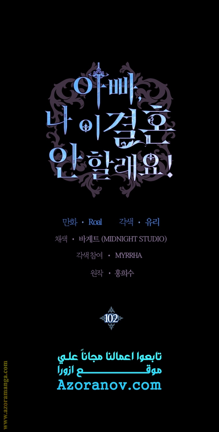 Father, I Don’t Want to Get Married! الفصل 102 يتضمن 145 صفحة كوميك في ترتيب القراءة الرئيسي. نُشر 22 فبراير 2023 و آخر تحديث 22 فبراير 2023.