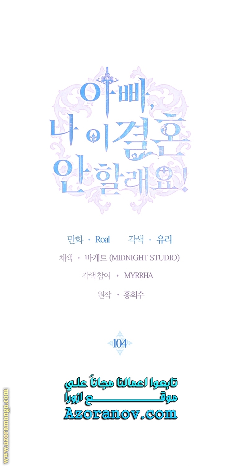 Father, I Don’t Want to Get Married! الفصل 104 يتضمن 114 صفحة كوميك في ترتيب القراءة الرئيسي. نُشر 15 مارس 2023 و آخر تحديث 15 مارس 2023.