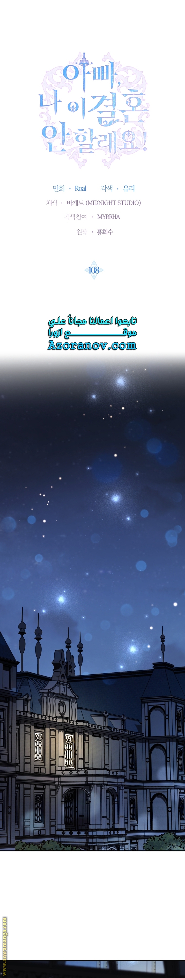 Father, I Don’t Want to Get Married! الفصل 108 يتضمن 47 صفحة كوميك في ترتيب القراءة الرئيسي. نُشر 12 أبريل 2023 و آخر تحديث 12 أبريل 2023.