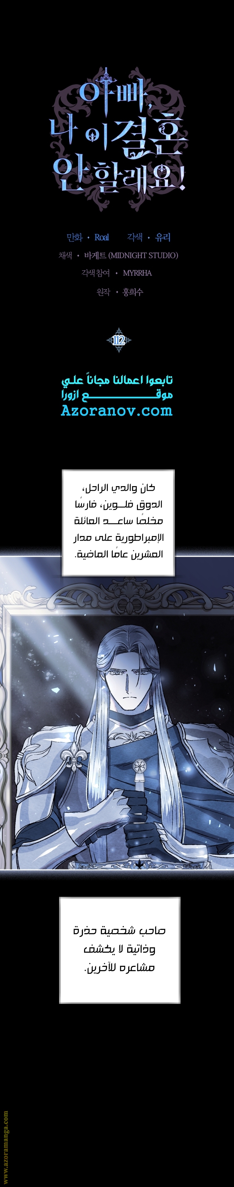 Father, I Don’t Want to Get Married! الفصل 112 يتضمن 56 صفحة كوميك في ترتيب القراءة الرئيسي. نُشر 18 ماي 2023 و آخر تحديث 18 ماي 2023.