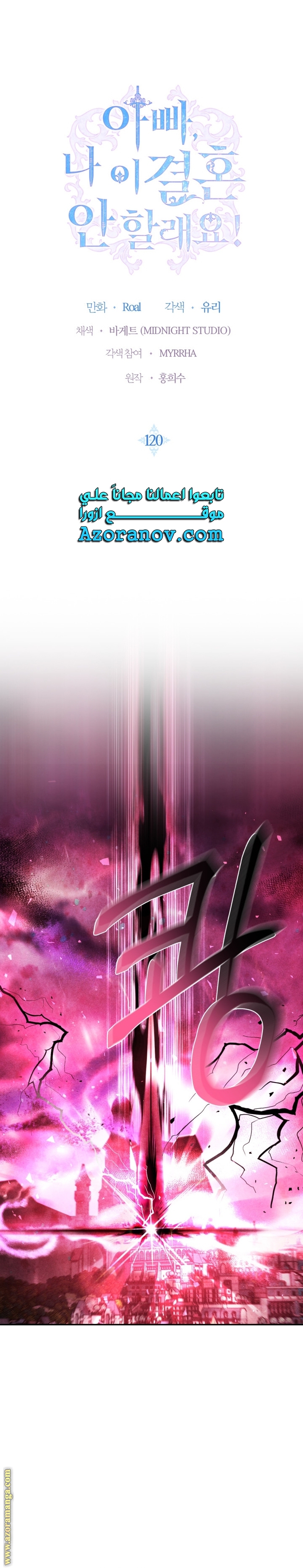 Father, I Don’t Want to Get Married! الفصل 120 يتضمن 43 صفحة كوميك في ترتيب القراءة الرئيسي. نُشر 23 غشت 2023 و آخر تحديث 23 غشت 2023.