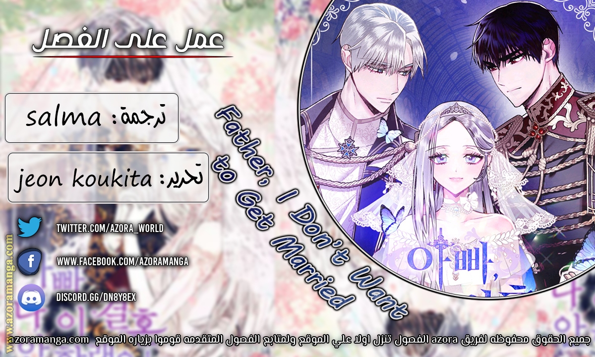 Father, I Don’t Want to Get Married! الفصل 22 يتضمن 7 صفحة كوميك في ترتيب القراءة الرئيسي. نُشر 17 مارس 2021 و آخر تحديث 17 مارس 2021.