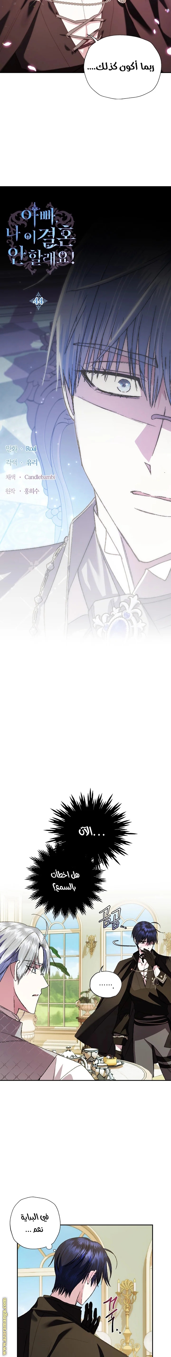 Father, I Don’t Want to Get Married! الفصل 44 يتضمن 30 صفحة كوميك في ترتيب القراءة الرئيسي. نُشر 11 غشت 2021 و آخر تحديث 11 غشت 2021.
