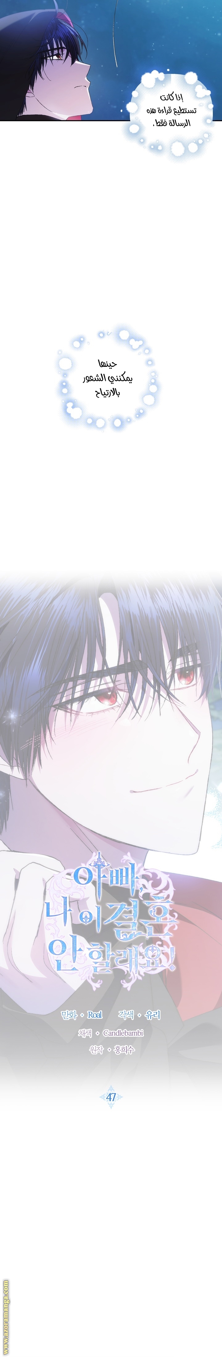 Father, I Don’t Want to Get Married! الفصل 47 يتضمن 30 صفحة كوميك في ترتيب القراءة الرئيسي. نُشر 1 شتنبر 2021 و آخر تحديث 1 شتنبر 2021.