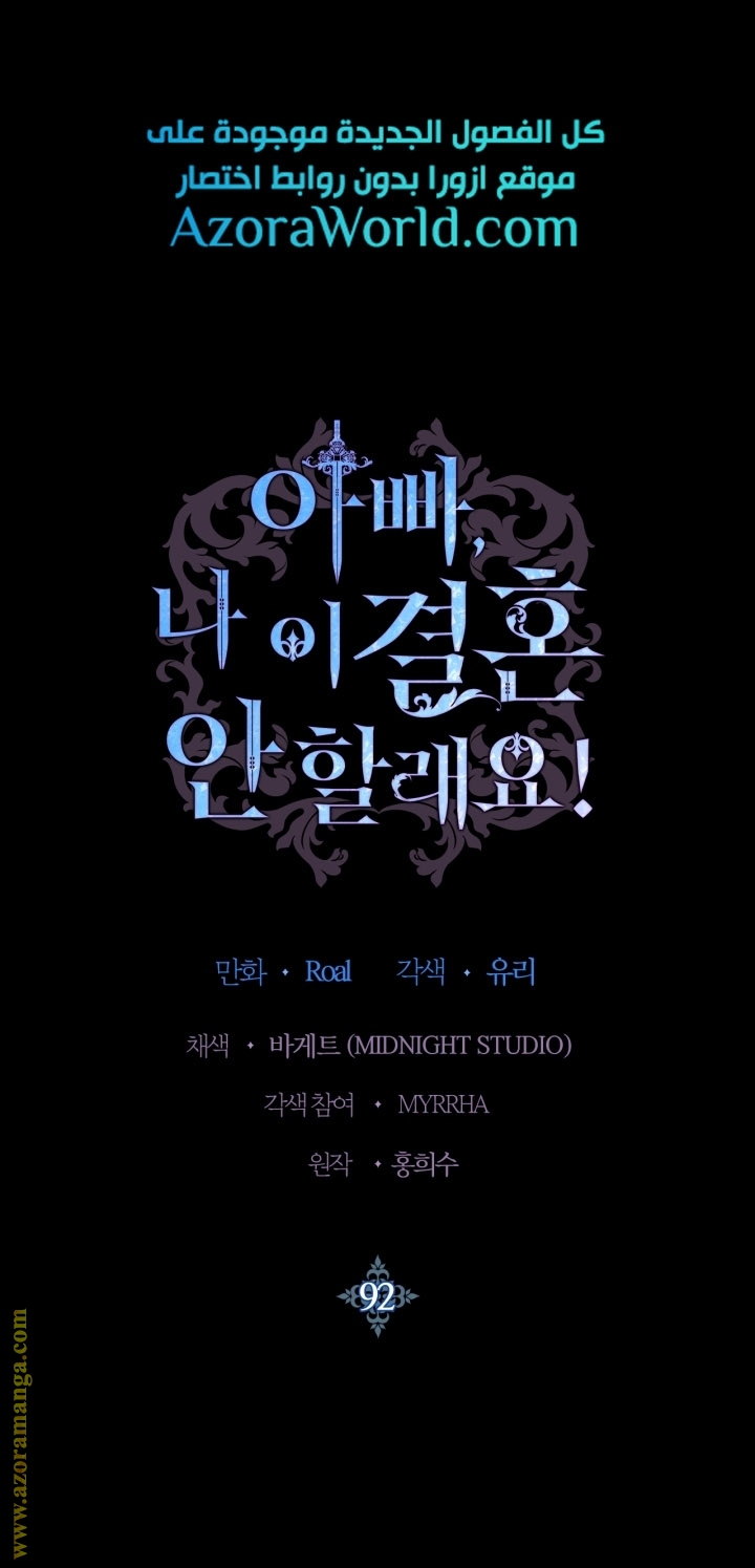 Father, I Don’t Want to Get Married! الفصل 92 يتضمن 122 صفحة كوميك في ترتيب القراءة الرئيسي. نُشر 21 دجنبر 2022 و آخر تحديث 21 دجنبر 2022.