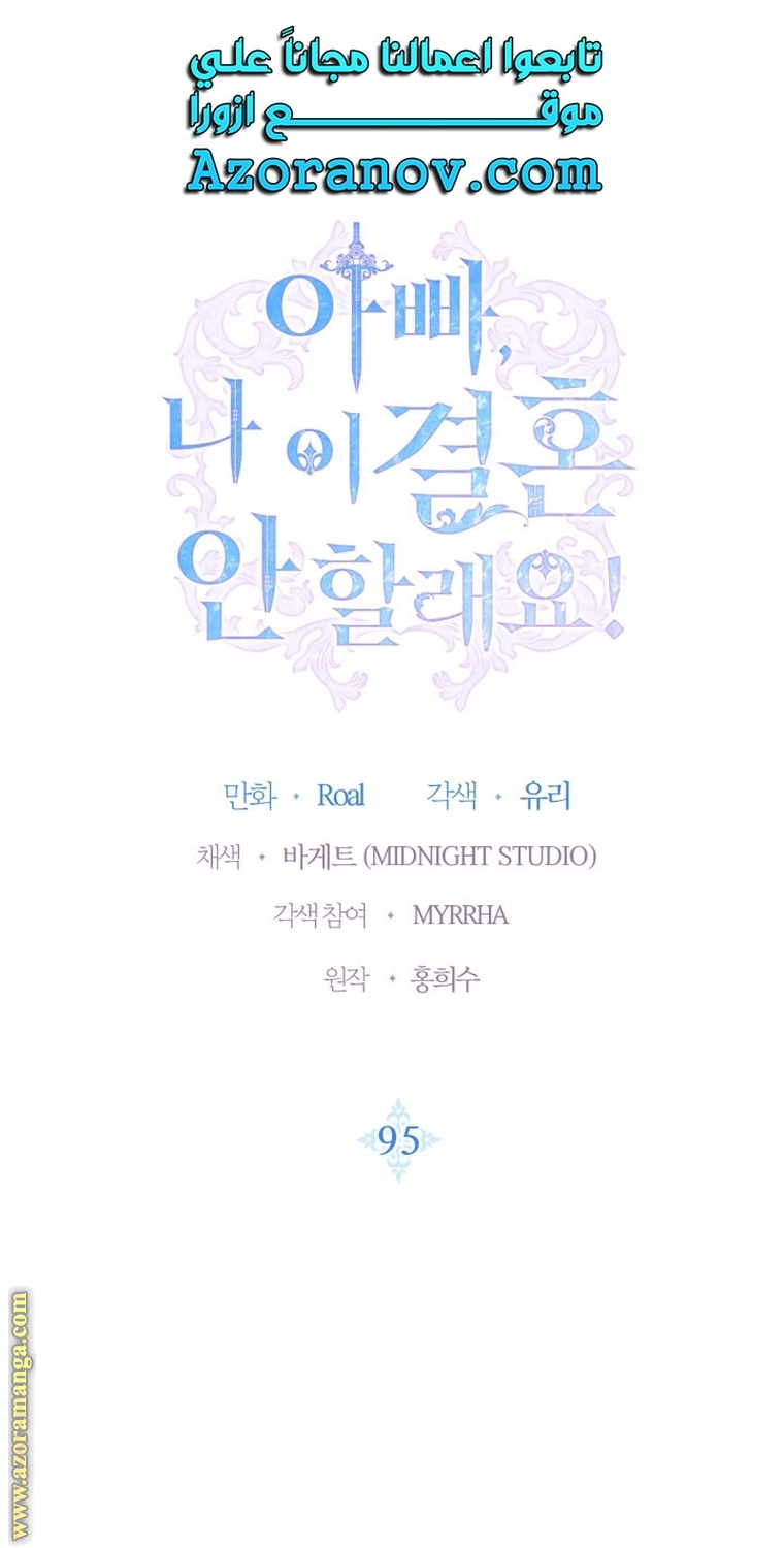 Father, I Don’t Want to Get Married! الفصل 98 يتضمن 100 صفحة كوميك في ترتيب القراءة الرئيسي. نُشر 27 يناير 2023 و آخر تحديث 27 يناير 2023.